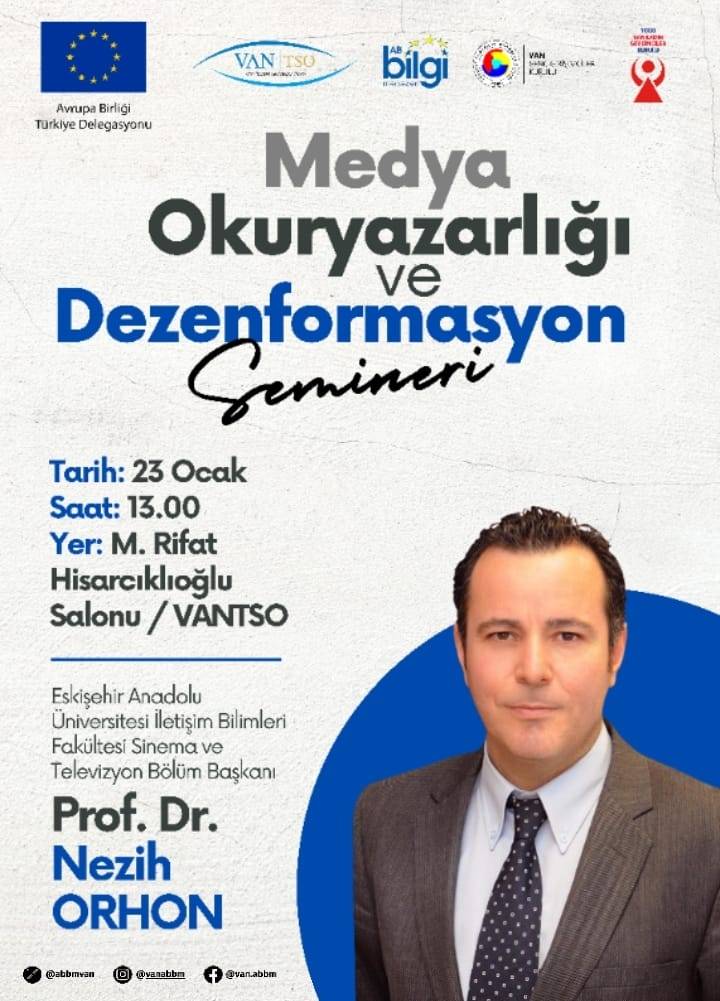 Avrupa Birliği Türkiye Delegasyonu desteği ile Odamız AB Bilgi Merkezi, Kadın ve Genç Girişimciler Kurulumuz işbirliğinde "Medya Okuryazarlığı ve Dezenformasyon Semineri" düzenlenecektir.