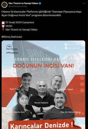 27 Ocak 2024 Cumartesi ⏰ 14:00 📍 Van Ticaret ve Sanayi Odası
